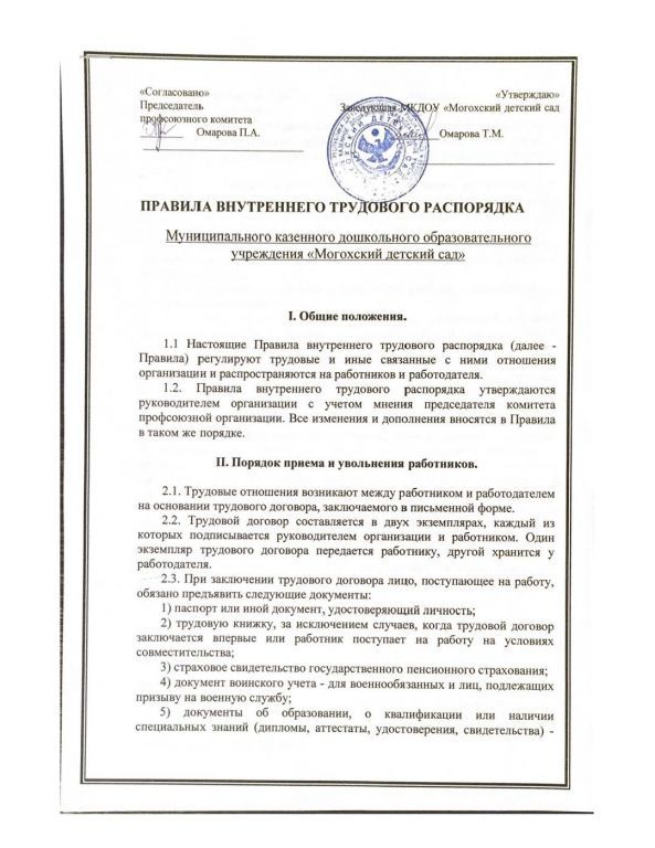 Правила внутреннего трудового распорядка